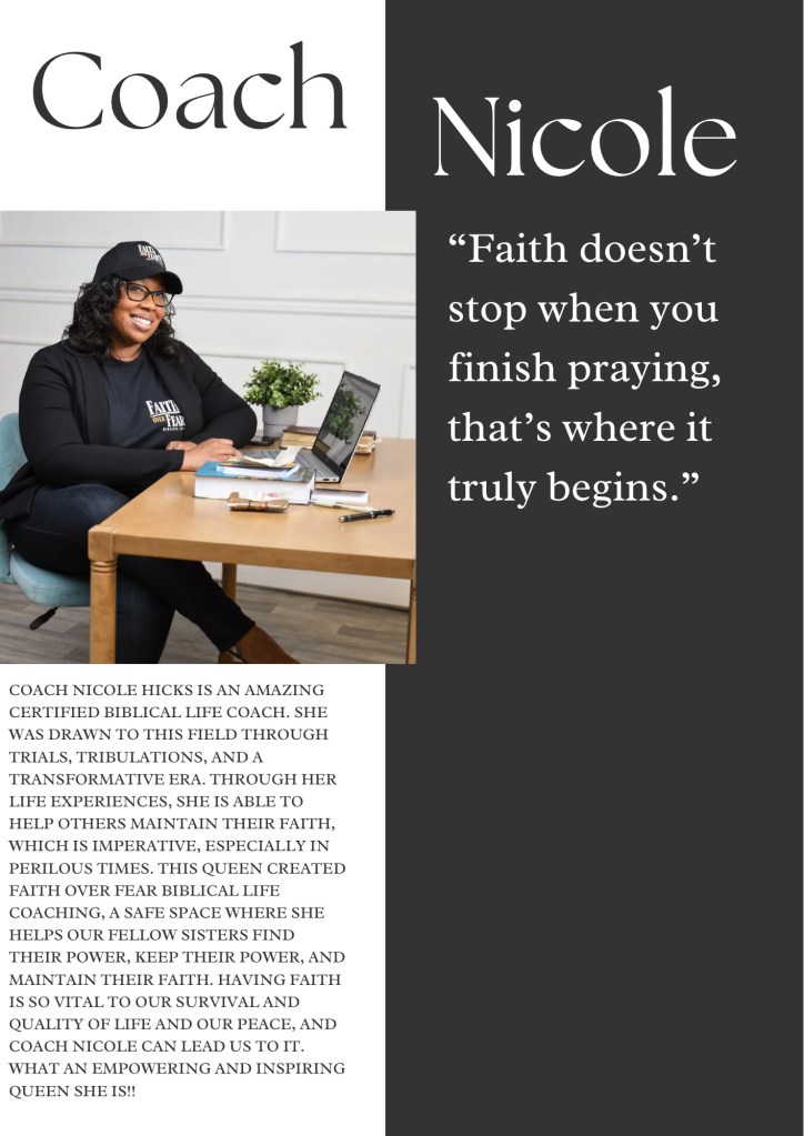 Out of that experience, Faith Over Fear Biblical Life Coaching was born. I wanted to create a space where women could find the same strength and peace that God gave me, even when life feels uncertain. My mission is to help women not only pray with power, but also live with purpose, walking boldly in faith despite fear, doubt, or circumstance, understanding that faith isn’t a vibe or trend, it is a lifestyle.