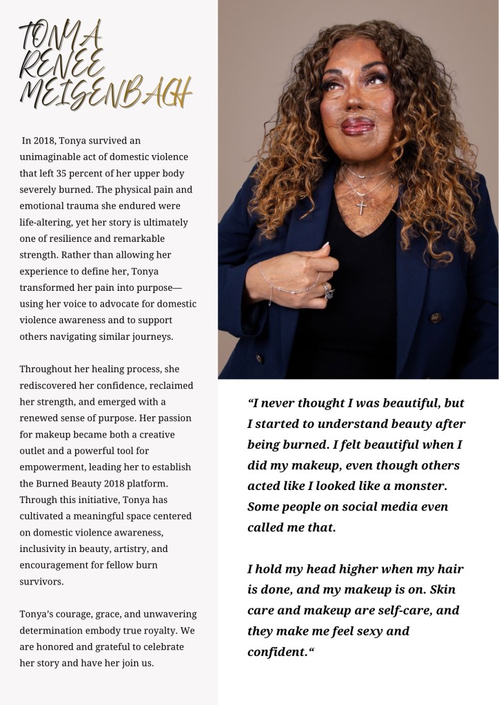 Many individuals have experienced deep pain and trauma as a result of domestic violence. It’s truly admirable that you’ve chosen to share your story to uplift and empower others. At what point in your healing journey did you decide to transform your trauma into advocacy by creating your platform, Burned Beauty 2018?