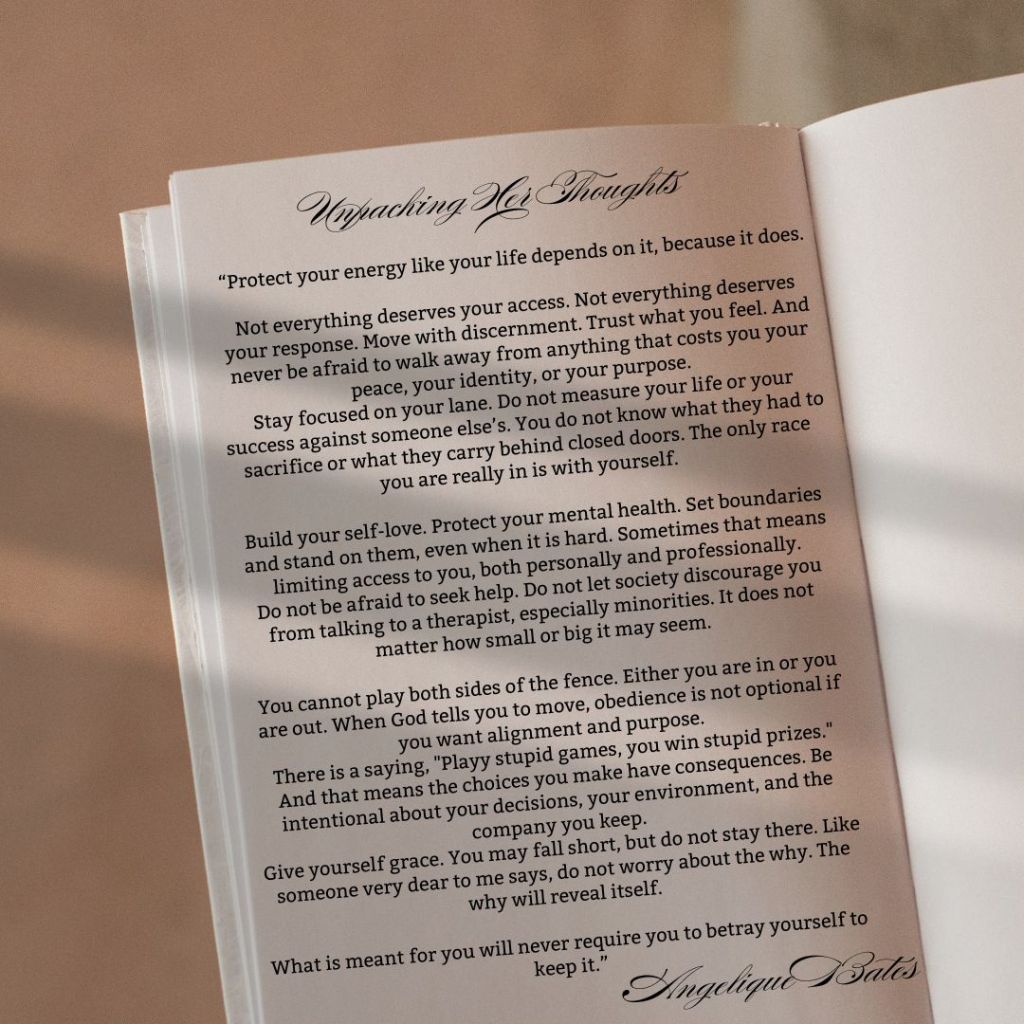 I am very intentional about protecting my peace. That means boundaries, being mindful of what I allow around me, and checking in with myself regularly.